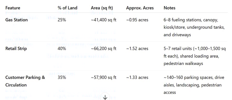 Commercial Real Estate Development Featuring a Retail Strip and Gas Station
